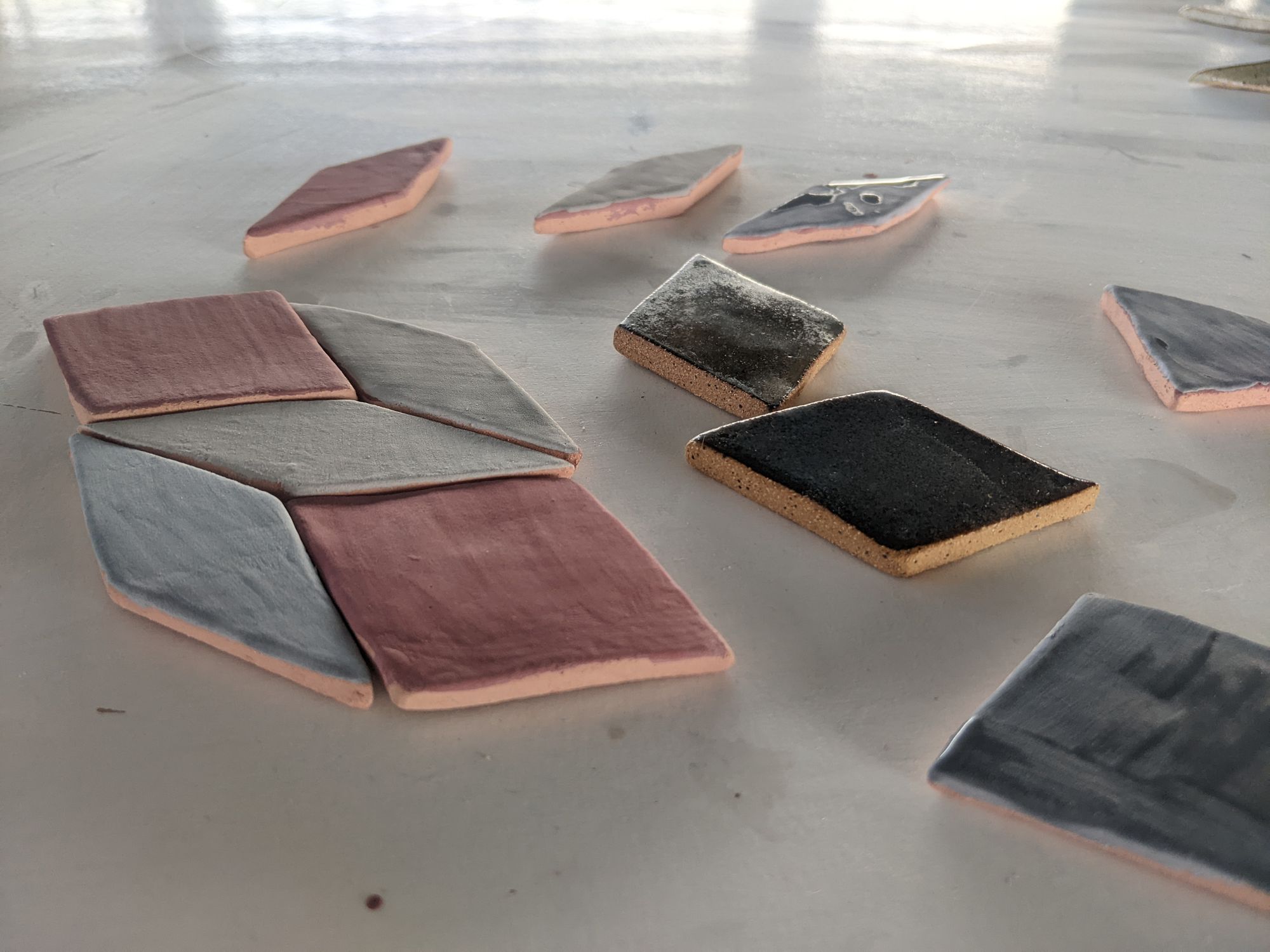 The samples I’ve made so far are crude; I roll a slab of clay and trace the tiles from laser-cut templates. I’ve been learning Grasshopper, a parametric plugin for Rhino, and for practice I’m modeling the tiles as irregular pyramids. From here, I’ll 3D print the geometry and pour a plaster mold for pressing the clay. This part I’ve at least done before, albeit 15 years ago.