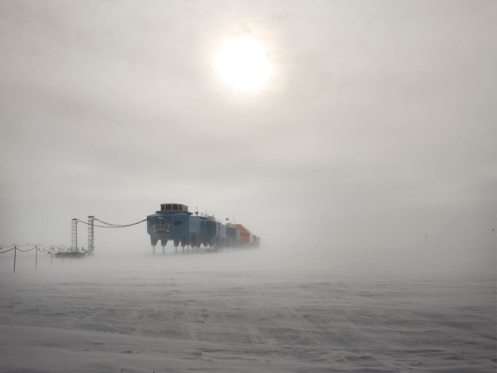 The ICE-ness of polar regions poses problems for the construction, operation, and maintenance of buildings. Britain’s Halley VI research station rests on hydraulic stilts (to lift it out of rising snow drifts) and on skis (in case it needs to be moved as the ice shelf beneath it shifts). The window of time during which building materials can be shipped in and put together is short; while prefabrication has struggled to take hold in the general construction industry, Antarctic research bases serve as extreme proofs of concept for prefabrication of building elements.