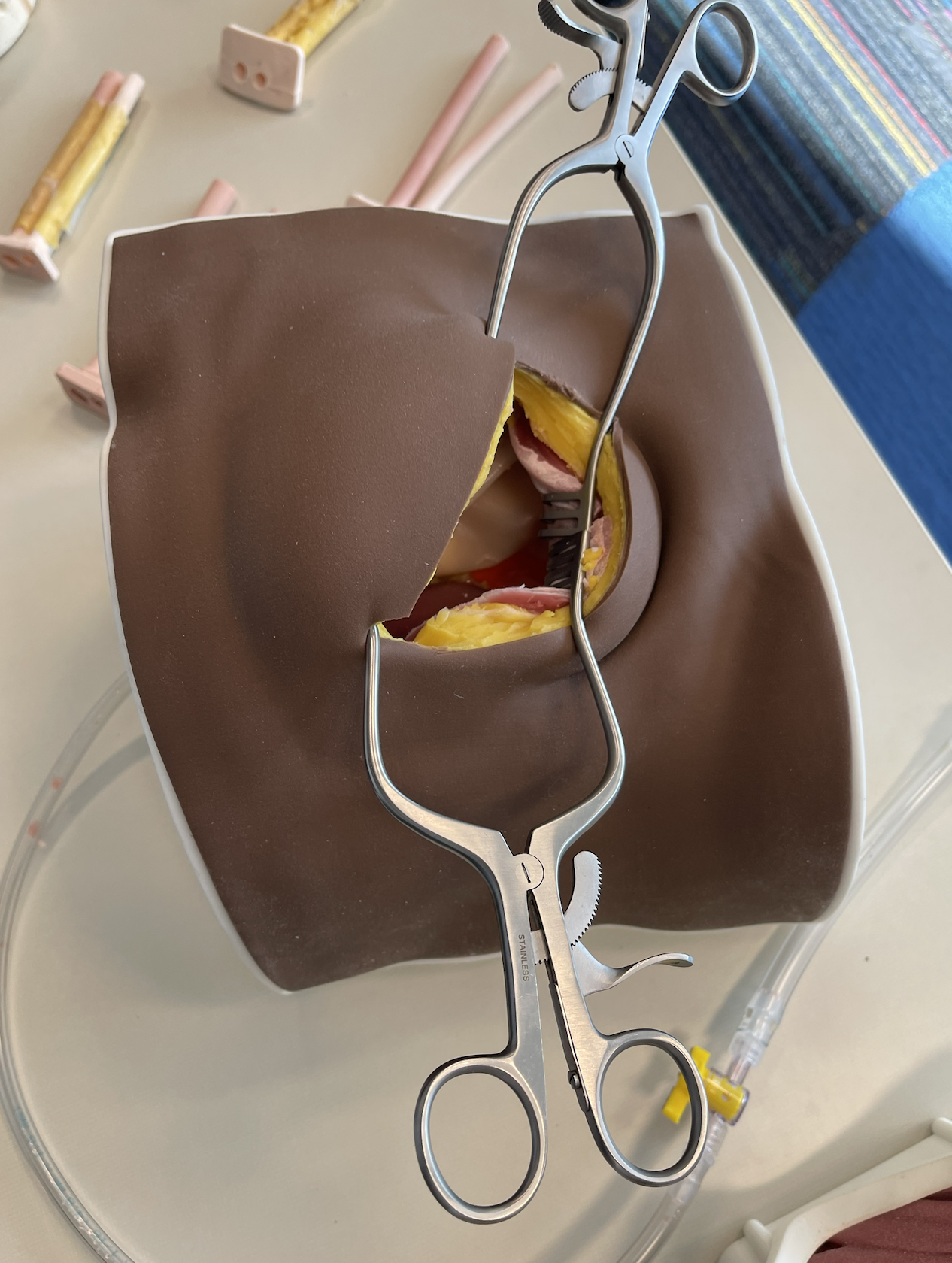 AE: Yeah, we have cartilage recipes, miscellaneous muscle recipes, fat, different kinds of bone, vessel materials, etc. We are in a funny position as engineers from a materials standpoint: generally, you don't want your product to break or get damaged, but we are trying to get materials that fail as close to reality as possible. For us, that means we are intentionally making some really delicate stuff sometimes. For instance, our team has a fetoscopic (!) surgery trainer [which allows surgeons to operate on fetuses in utero] under development – you can imagine how thin and fragile fetal tissues in utero are!