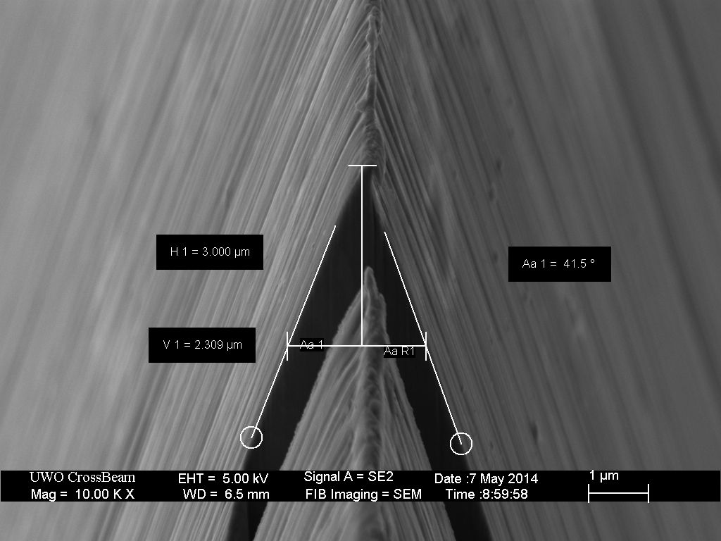 Geometry might be the most explicit description of sharpness we have. If you dig into the internet community of knife nerds, you eventually get to websites with pictures of cutting edges taken with an electron microscope, and measurements of edge thickness and angles. They’re trying to quantify the geometry of some very sharp edges – of surgical scalpels, razors, and high quality kitchen knives. These blades are made sharp in order to be precise, so it seems fitting that to gauge their sharpness, we measure their geometry with as much exactitude as we can muster.