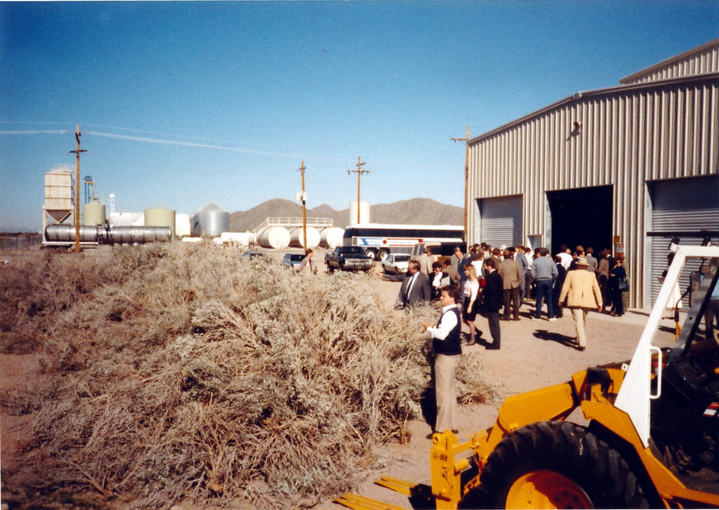 Guayule, in other words, is almost tailor-made for the other way industrial agriculture is practiced – a thoroughly mechanized activity designed around having small numbers of people produce giant crops. So much about the cultivation of Guayule feels almost viscerally like an assertion of dominance over nature: Our monumental tractors dwarf the spindly shrubs, we terraform the desert in neat rows, and flood it so the first shoots emerge.