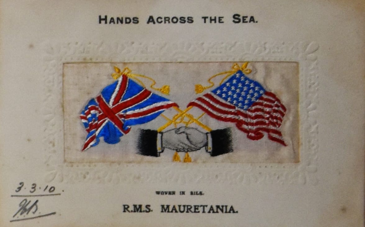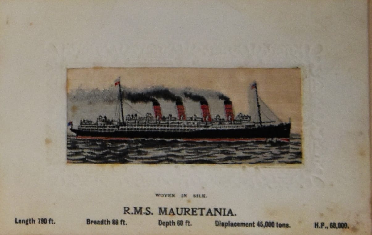 The Stevengraphs in the album commemorate the RMS Mauretania, the world’s largest ship until the Titanic’s sister ship (the RMS Olympic) was launched. Like many civilian vessels, the Mauretania was enlisted in military service during WWI and spent a year painted with dazzle camouflage.