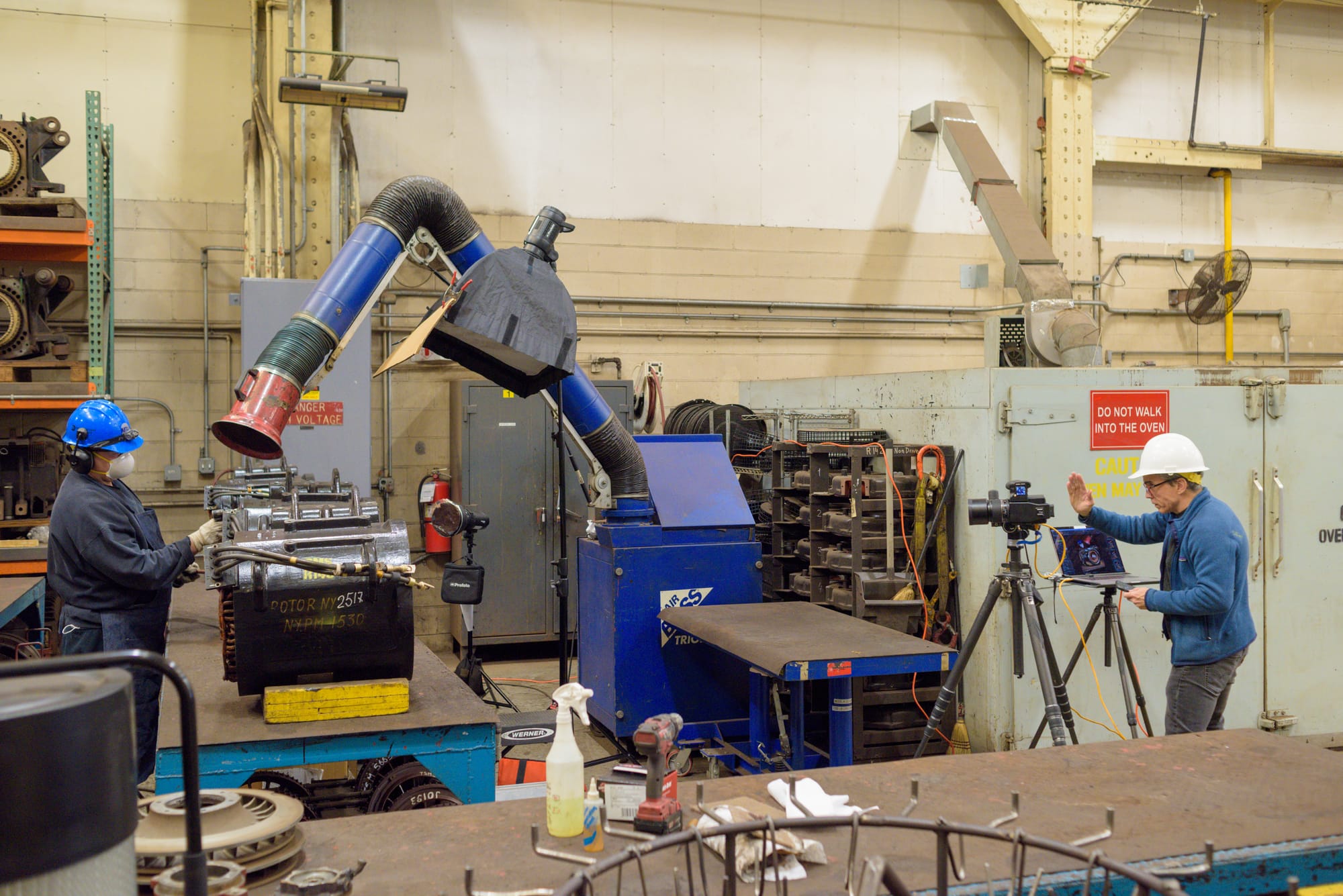 I wanted very much to witness Payne in action, so the second time we met was clear across the city on a sunny morning in February. Payne was scouting a shoot at the MTA’s 207th Street Shop, a train yard near the northern tip of Manhattan which overhauls carriages, refurbishes HVAC units, and generally reminds its visitors that the trains have to go somewhere at the end of the line. To get there, I went almost to the end of the 4 train, salmoning northward against rush hour traffic for more than an hour, listening to the recording of our first conversation and trying to think of insightful follow-up questions to ask. I had consciously overpacked for the trip: large notebook, small notebook, laptop, voice recorder, not one but two cameras. The day ended up being surprisingly warm, and I had overdressed as well. But I had remembered to wear boots (one of the best things you can do while visiting a factory is wear boots) and felt, overall, reasonably well-prepared.