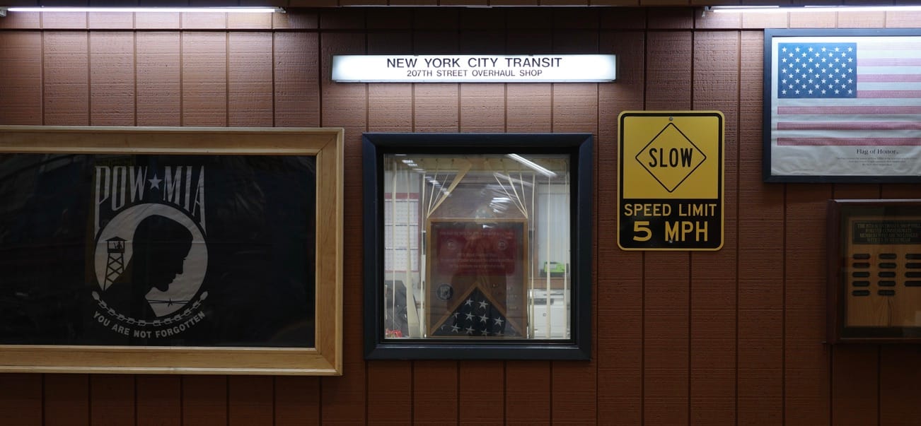 There were a few moments at the 207th Street shop when I wasn’t sure the date was going to go well. We had been let into the building and led into a low-ceilinged office area. It had the appearance of a construction site office, adapted maybe from a prefabricated trailer that was dropped on the floor of the factory. As we entered we were confronted with a clutter of desks, each of which was cluttered with large stacks with paper. Through this makeshift office area we entered a conference room, which was appointed with mismatched furniture and decades of randomly arranged relics. An American flag, folded and framed, was propped on a ledge. A grandfather clock stood, stuck in time, in one corner. I am here to assist Christopher Payne, I reminded myself as I squeezed into the opposite corner, glancing at the handwritten “NYTimes” on my visitor badge and noticing that it would be physically awkward for me to exit the room if that was requested. Every other seat in the room filled up: Payne to my immediate right, with various MTA employees wrapped around the table past him. And all of the sudden I realized that I had entered into a meeting between two of the most important institutions in New York City: The Metropolitan Transportation Authority and the New York Times.